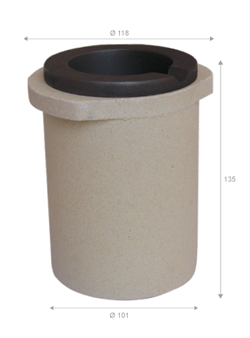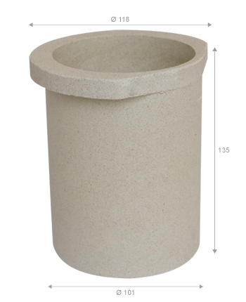 AR107 crogiolo utilizzato nell´industria orafa, realizzato in ceramica con un rilevante smussa sul diametro superiore.