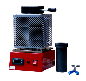 Electric furnace designed and constructed to melt precious metals and alloying, featuring to 1120 °C (2012°F), crucible (included) capacity until 3kg Au.