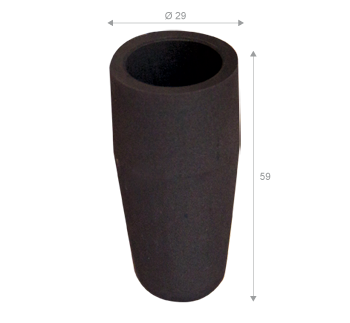 Speciale crogiolo in grafite artificiale che rappresenta sia come pezzo singolo sia come pezzo complementare della serie crogiolo ceramica/crogiolo grafite/eventuale tappo di chiusura.